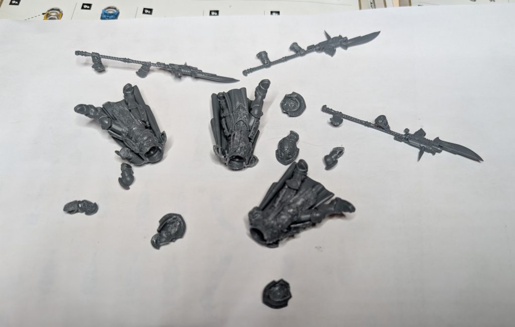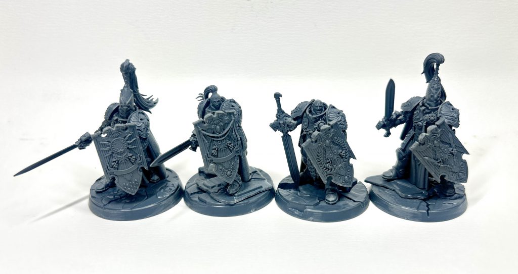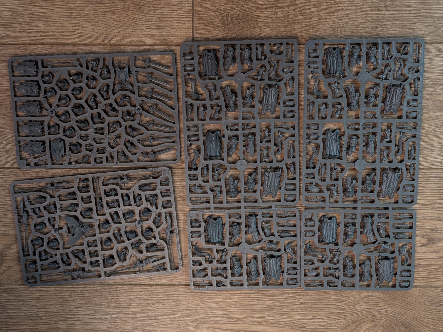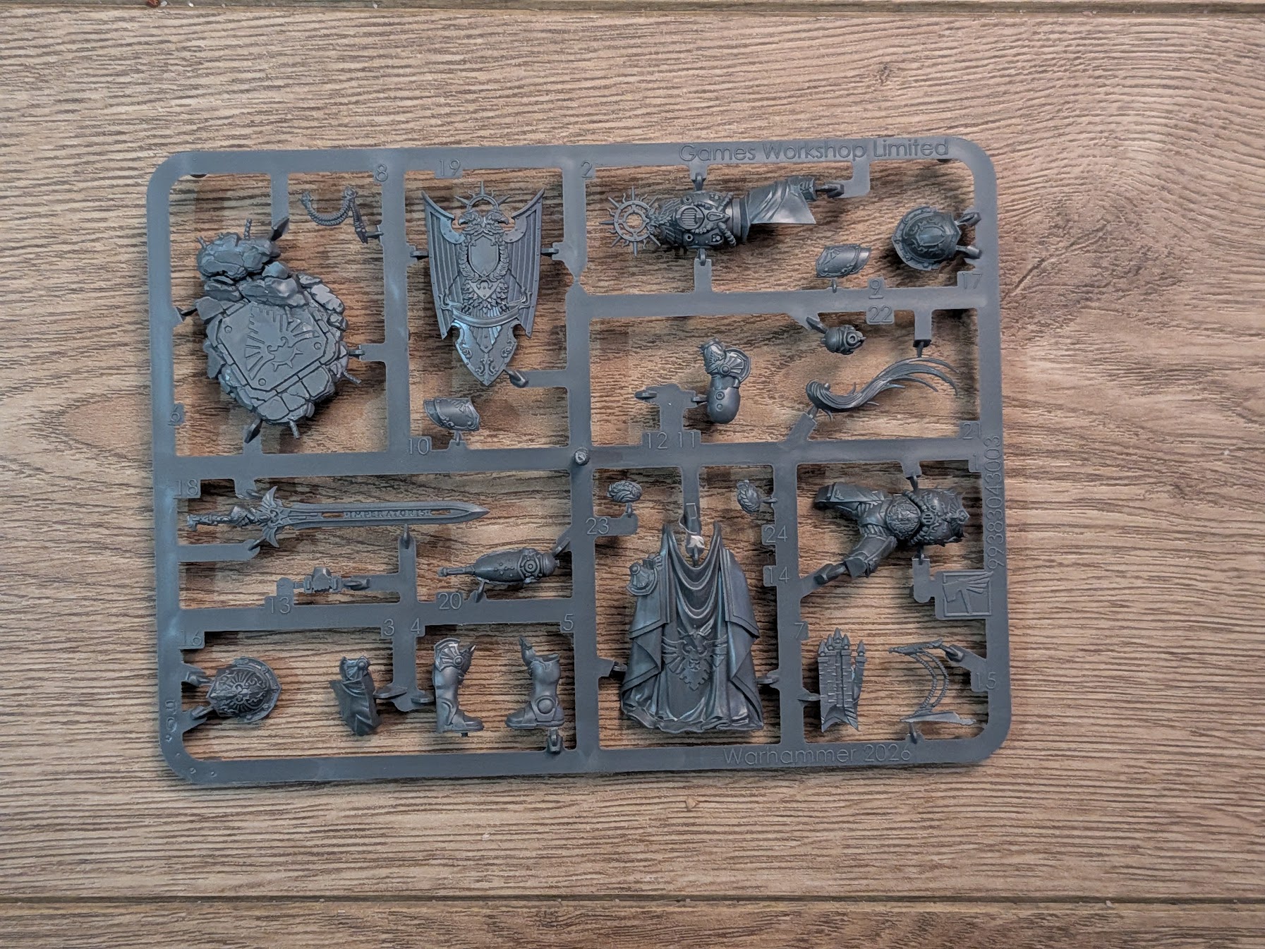 Badusernametag: For extremely complex and detailed models these go together very easily indeed. The basic body of each model is eight parts (front-back-leg-leg-grieve-grieve-foof-cape) and this assembly is future simple. After that there are not many options here. Of the six, only one of the builds has an option, this is to have the vexilla or not. The vexilla bearer can also have a choice of Misericordia or sword, but that is it. Theres no more options here and the variety comes from the choice and postitioning of the head alone. Having built two straight from the instructions (in order to get phoenix’s quickly) I thought I had a crack at mixing the remaining arms and bodies up, as I looked like this was possible. Sadly due to minute differences in arm alignments and connecting pieces I was wrong and without some work these are essentially mono-pose models. Given that it’s capes are resting on the ground and also moulded into the arms, pauldrons, weapons etc it would actually be some work to kitbash or even modify these at all. Now maybe you have so few in an army that it wouldn’t matter, but I think this is a real shame. This kit is ostensibly a multipart kit, but in reality they may as well be push fit. It all aligns just so and that is the pose you get. Now don’t get me wrong they’re lovely models, but if you were expecting some variety please don’t be disappointed.Whilst a little disappointed by the lack of options for modelling here I am overall impressed by the sculpts and may get some more when the box drops. Feel like it would be a fun little project.