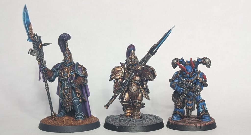 Legio Custodes compared to previous Adeptus Custodes and Night Lords Chaos Space Marine painted by Crabstuffed Mushrooms (Joey K)