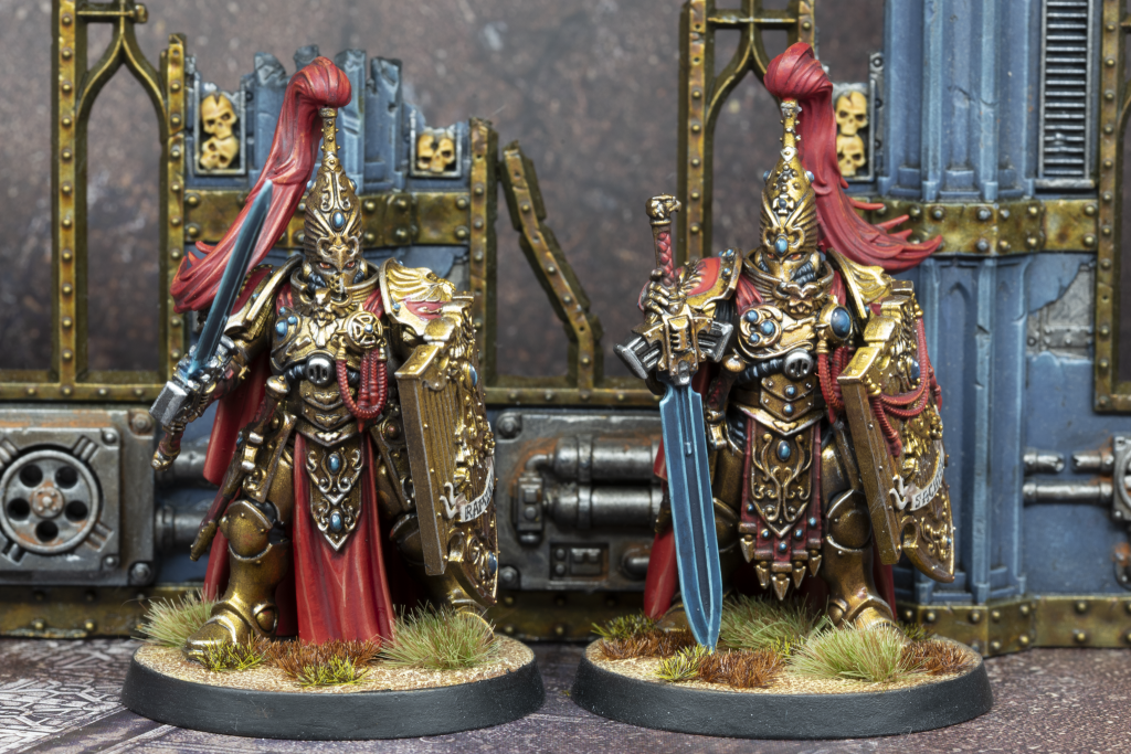Custodian Sentinels. Credit: PendulinAnd instead of using Mephiston Red, I painted the cloaks with a drybrush of Vallejo Game Color Bloody Red. It's a lot brighter and more saturated, which gives the cloaks a bit more pop.