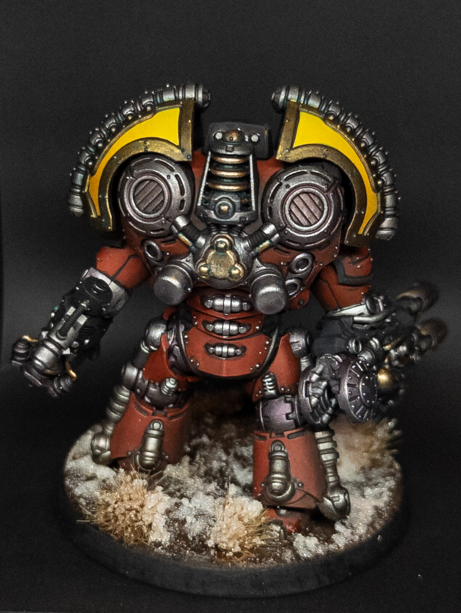 When it came time for painting and looking at subassemblies, the shoulder pads are very easy to do separately as well as all the magantised arms and weapons. The head is able to be inserted afterwards - no needing to trim the chin to fit in the hole afterwards like the Contemptor kit.