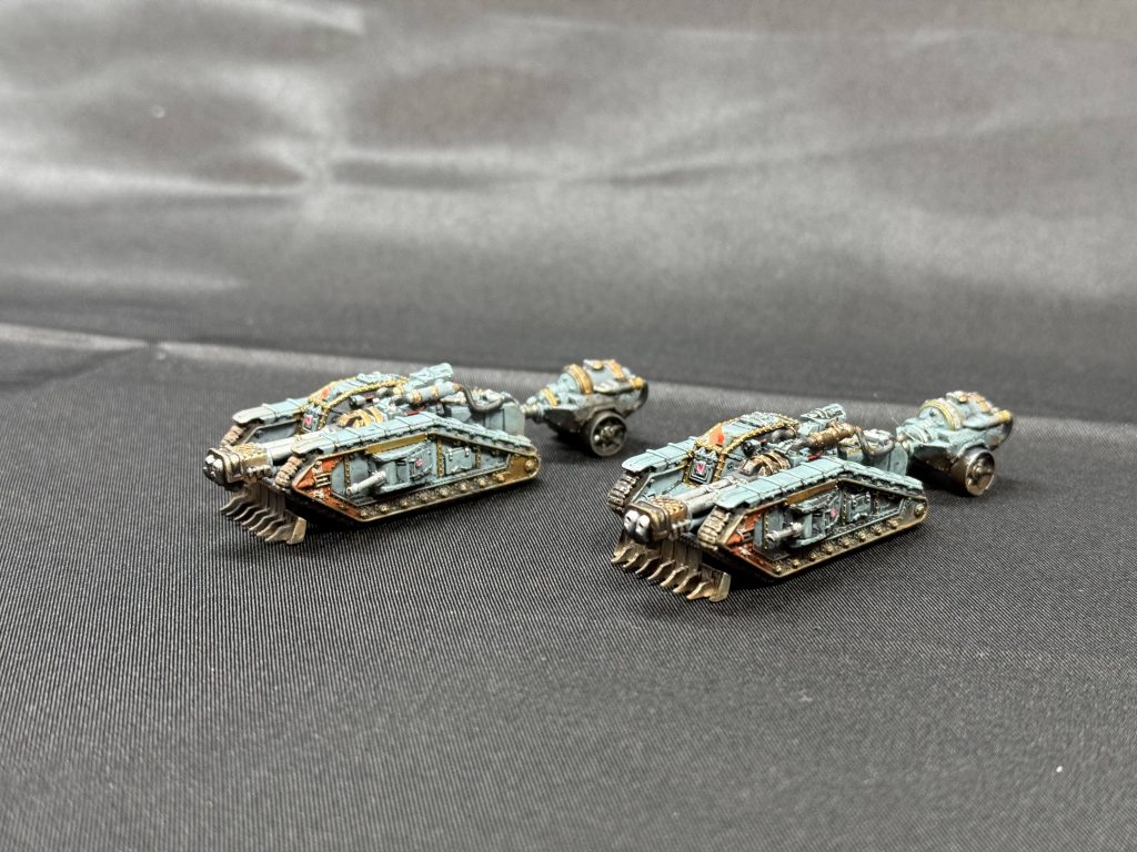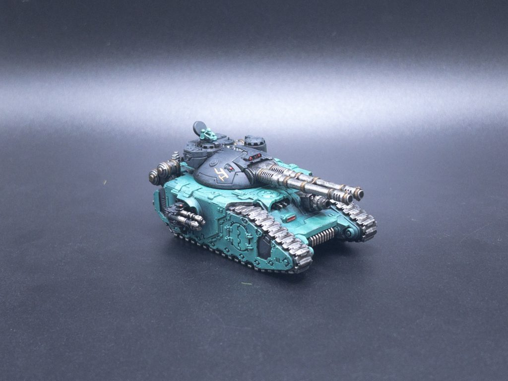 All heavy tanks all the time. The compulsory detachments are a Kratos HQ, 3 Kratos and 3 Fellblades for 620 points (a discount of 25 points but also giving you fixed options and no pintle weapons) with the option of 3 Falchions, 3 Glaives and 3 Typhons for another 790 points (a discount of 110 points, but again, fixed options and no pintle weapons).