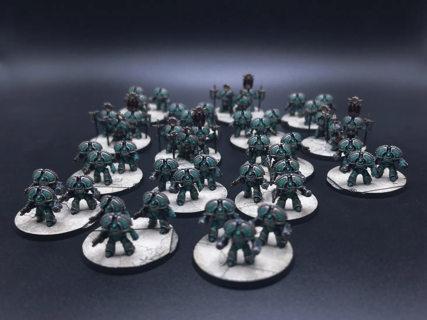 Legion Saturnine Terminators and Tactical Legionaries. Credit: NotThatHenryCLook how big they are compared to standard Astartes! I guess now we know why the Civitas buildings all have such massive doors.