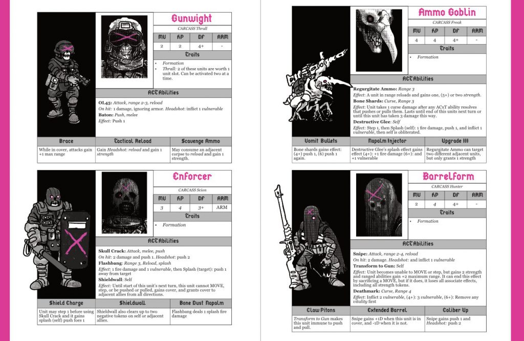 Deadsouls is probably the clearest and best example of this. In the rulebook, the Deadsouls playstyle is described as “attritional skirmishers”, which at first seems a bit vague. Looking at their roster and abilities, Condit was able to better define Deadsouls playstyle in layman’s terms: “They’re the tricky fuckers”.