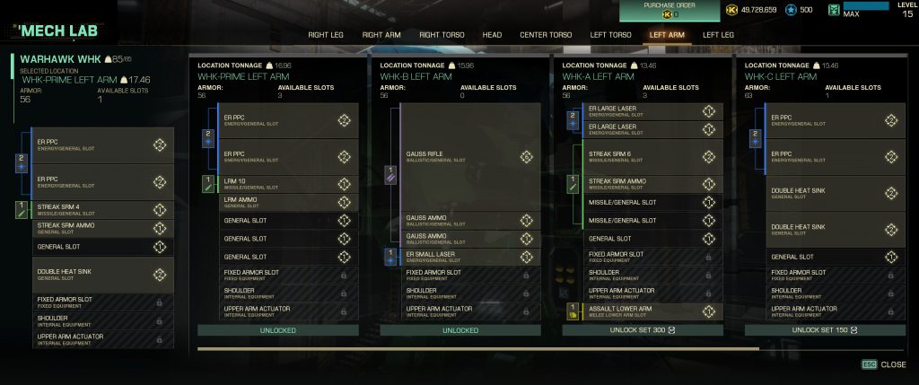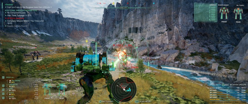 The UI is the biggest issue I have with the game. While I'm happy with the functionality of the mechbay or the battlegrid, both of them are clunkier to use than I think they need to be, and I'm on a keyboard and mouse. I can only imagine the pain of navigating them with a controller. I think the battlegrid, in single player, needs to slow time a bit and give you more room to figure out what's going on and assign orders, as well as allowing you to at least control movement of the mech you're piloting. The mechlab is the biggest UI offender, where everything's been split up into far too many screens. Mercenaries let you edit your entire mech at once, while Clans requires you to go into a separate screen per limb. When you're just playing around and trying to sort out a new configuration, it ends up with a lot of back-and-forth that slows the process. The ability to swap out individual omnipods rather than full sets is also stuck inside the individual limb, and I've seen people being surprised that they're able to do it as it's never made clear.
