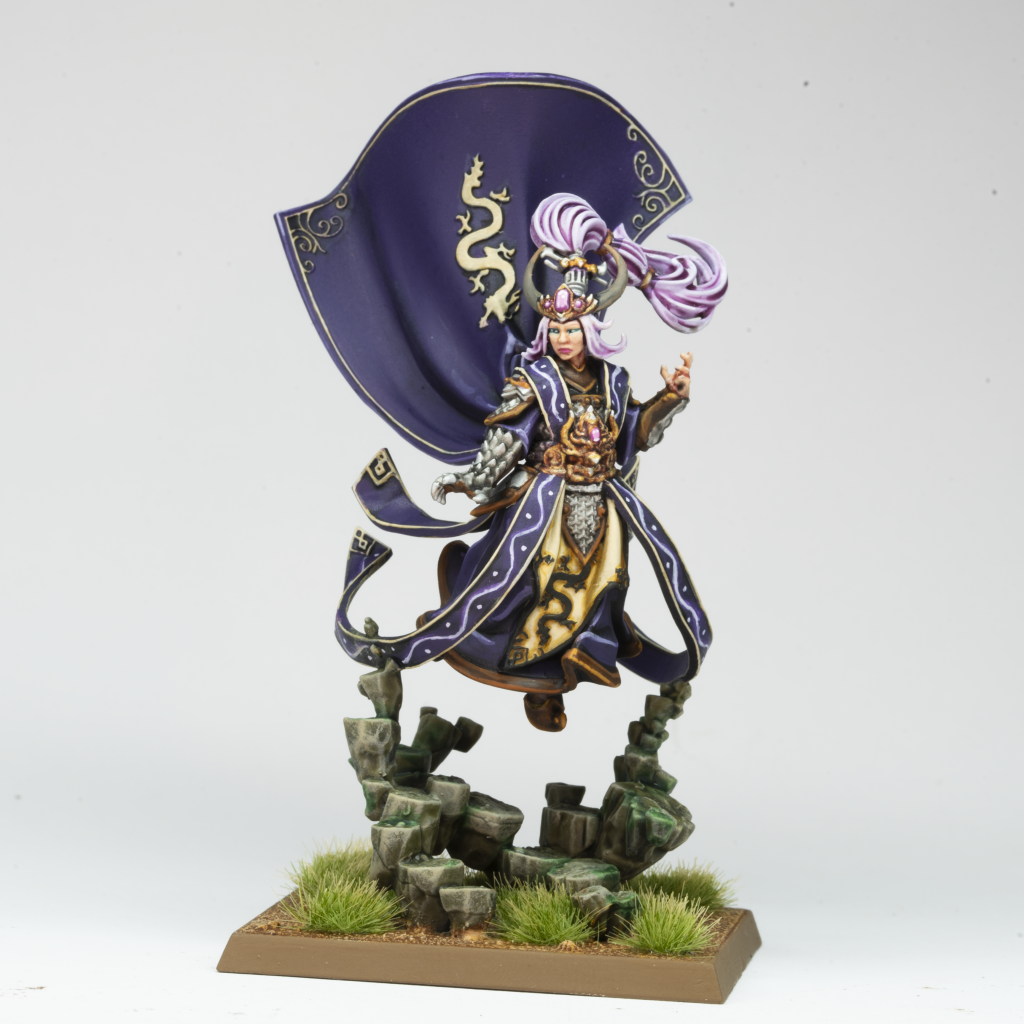 Miao Ying, human form. Credit: Rich NutterAfter that it’s just a nice traditional tufted field base, and she’s ready to bring the might of Grand Cathay to bear on the table. I can’t wait to see what other people do with this kit - if anyone’s brave enough to diverge from the lore-accurate colours, I’d love to see one painted in the super bright colours of some of the traditional representations of Chinese dragons, or the dragon puppets used in festivals and celebrations. Share them with us if you do!