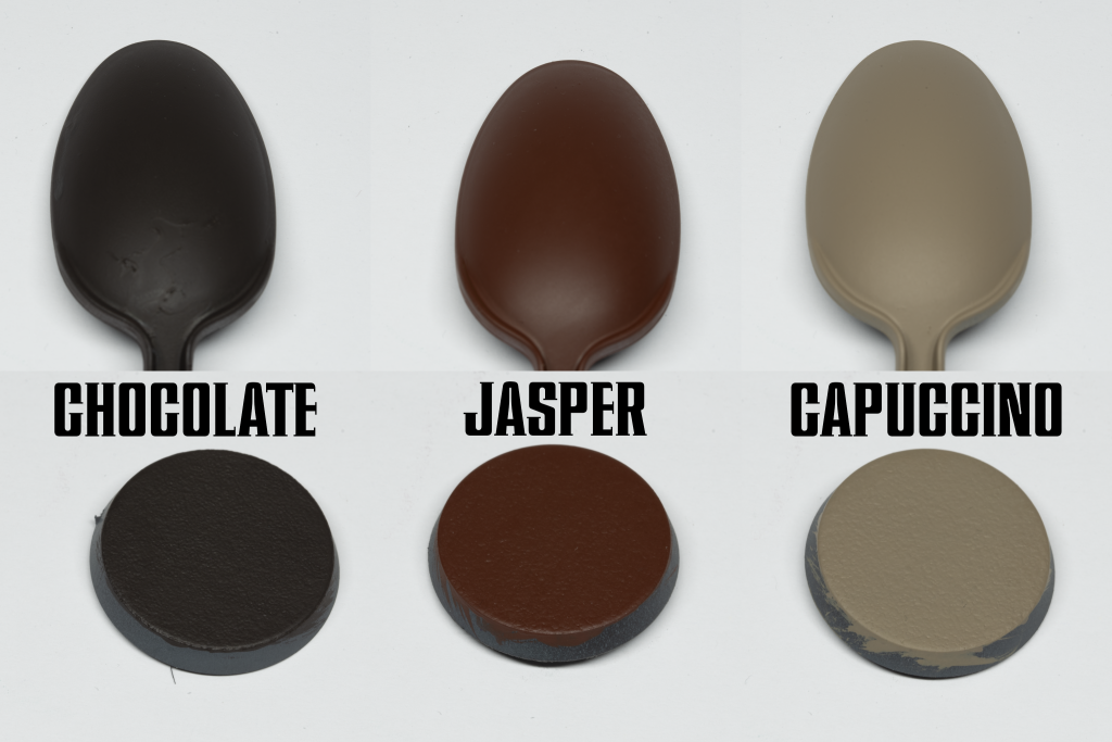 Mini Colour browns. Credit: Rich NutterChocolate: Fantastic. This brown is rich, dark and smooth. The obvious comparison is Citadel Rhinox Hide, although I think this comes out a bit darker and more matt than Rhinox. This was also one of the best-covering paints of the ones I tested. A real workhorse.