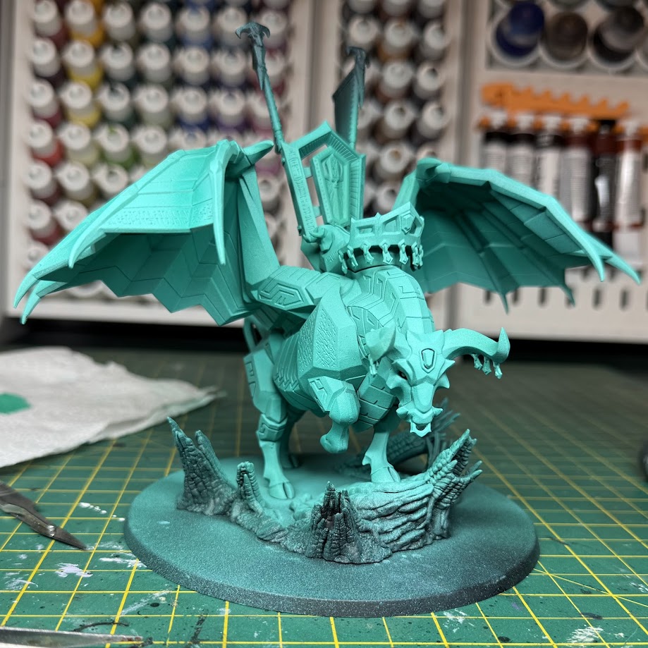 A later step of my painting process on the Taurus led me to change my strategy a bit, and try some stippling and drybrushing with the same colours after an all-over wash. As you can see below, the colours have gone on nicely and worked well together to give the impression of a jade marbled stone. Obviously they're going to be of limited use if you're not trying to paint something jade, but these do feel like really great paints for that use case.