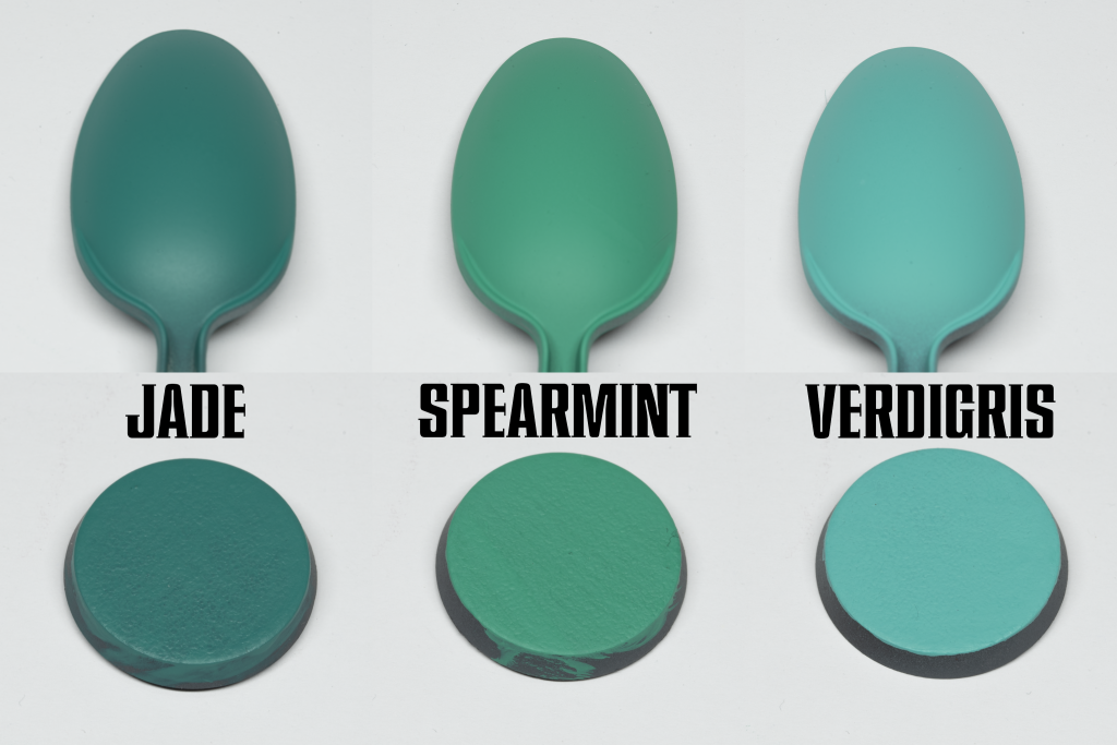 Mini Colour jades. Credit: Rich NutterJade: The platonic ideal of a jade green, it really does what it says on the tin. Surprisingly, I found that this didn’t cover quite as well as the lighter jade colours, although it was only really a matter of one or two extra coats of thinned paint. The resulting colour is great though, deep and intense. If you’re looking for a comparison, it’s about halfway between Pro-Acryl Jade and Bright Jade, and also a touch less blue.