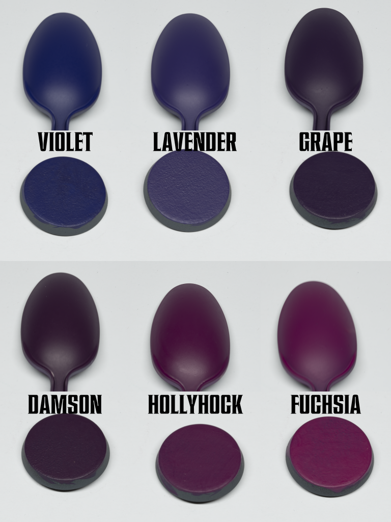Mini Colour purples. Credit: Rich NutterViolet: Wow, this is an intense colour. Amazing coverage, and a super saturated rich purple. It’s the platonic ideal of purple. I’m struggling to say anything more intelligent, it’s just really nice. It covers great too.