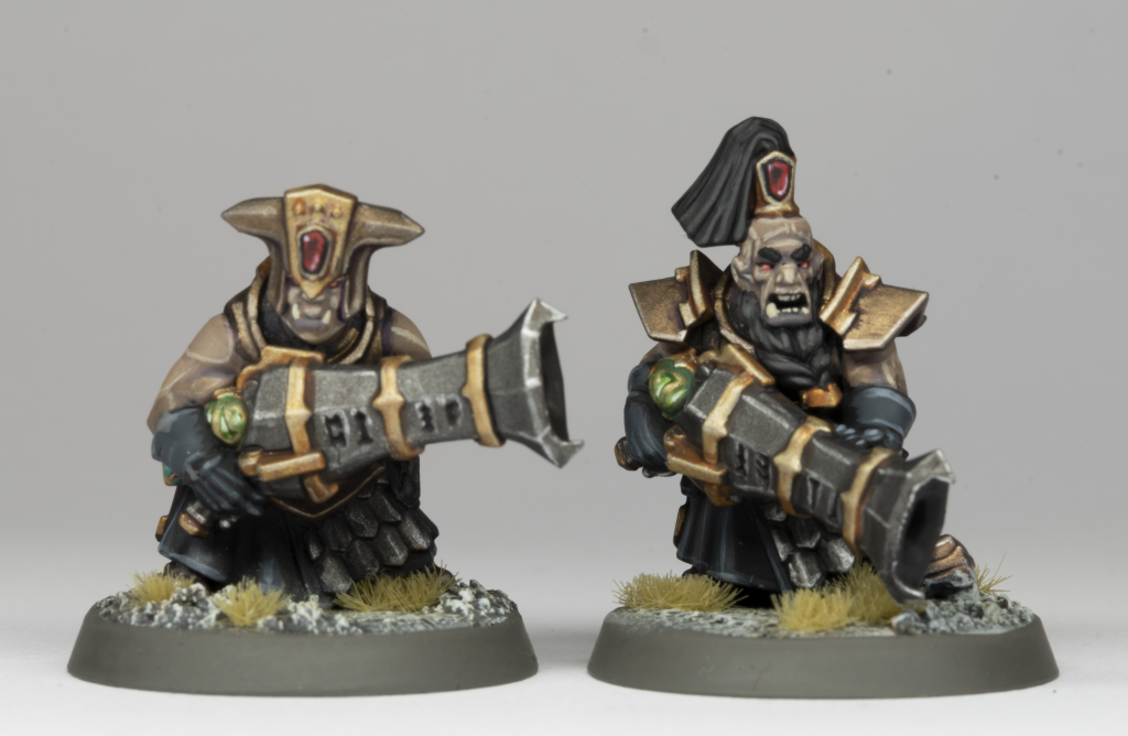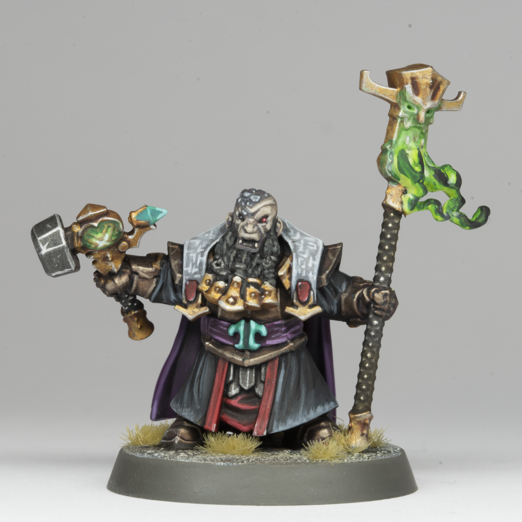 The jade paints were put to work in anger on the Ashen Elder (can you tell I've been painting a lot of Helsmiths recently?). I think they worked really well on his belt detail and the gem of his hammer - you can really see how Verdigris feels like quite a jump from Spearmint, but still works well as a highlight. I went thinner on my layers on the buckle, trying to build the highlights smoother.