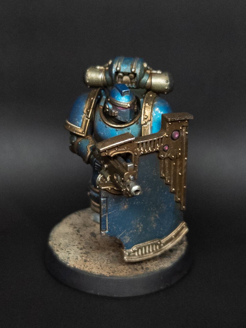 These guys paint up as well as you’d expect; outside the above mentioned shield sub-assembly, they paint up just like any other MkIII marine. Obviously, I didn’t get as far with these guys as I’d have liked, but it comes with the territory when I’m trying to hobby on a new kit over the winter holiday week; just too much else going on. Damn you real life getting in the way of my toy soldiers!But this is where I got to; you can still get the idea. I decided to paint up an Ultramarine Breacher in the style of my Traitor Nucerians (or at least their updated scheme from the one I didn’t really like before.)