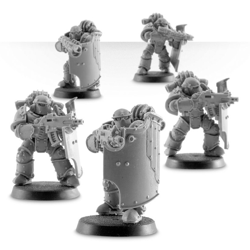 The first version of what we know as a Legion Breacher released with the Imperial Armor Badab War expansions from Forge World back in 2011, widely considered a “dry run” of what would become the formula for releasing the Horus Heresy. The kit was a set of boarding shield-toting left arms paired with a few new right arm parts including the lascutter and grav gun pieces that are now synonymous with Breacher squads.
