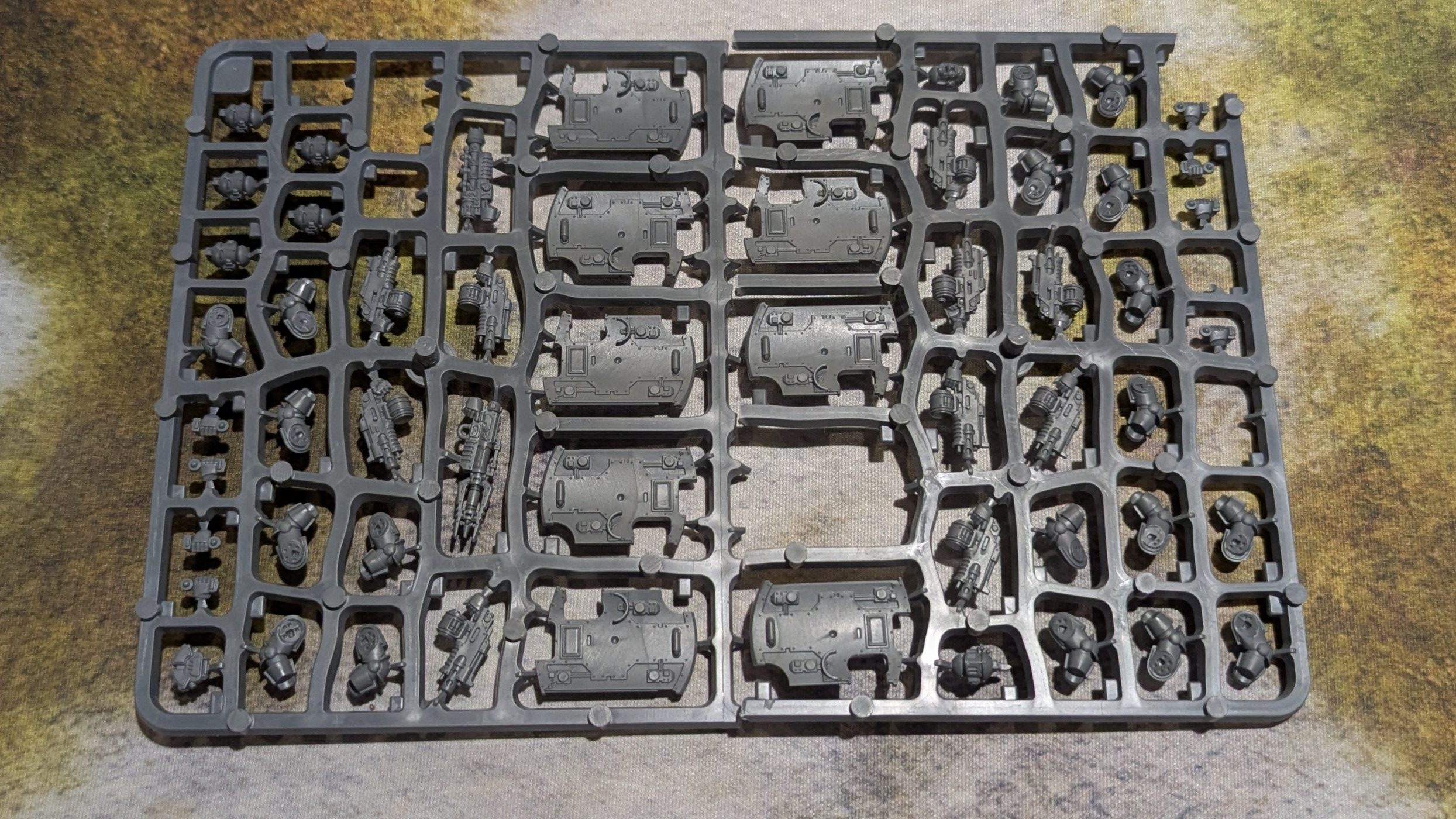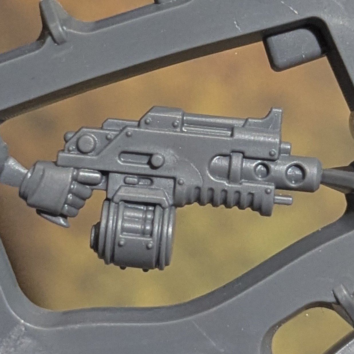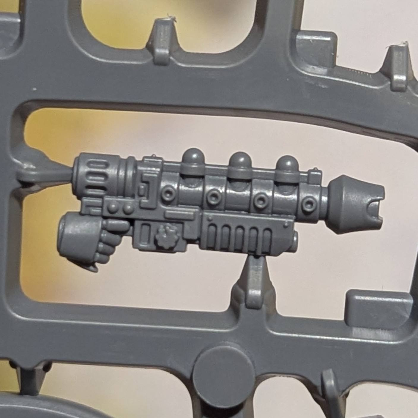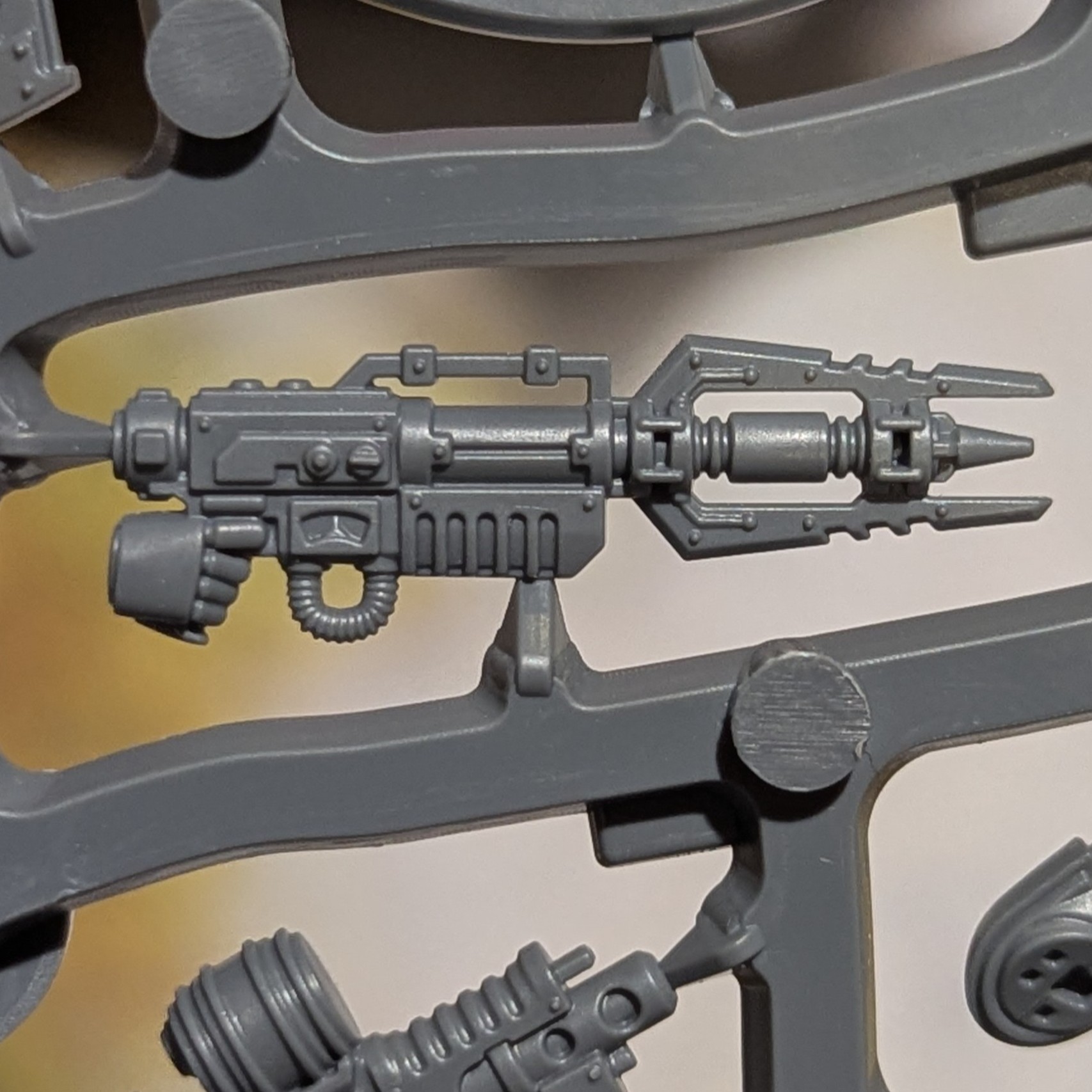 In this kit, you get 10 sets of bolter/shield arms, a set of modified Breacher-style MkIII helmets, and a couple of special weapons (namely, the graviton gun and lascutter which both got beautiful new plastic renders; I mean, just look at that lascutter!)