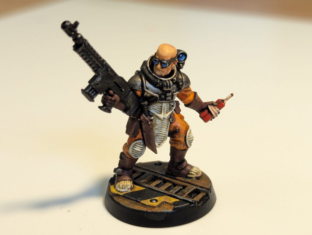Pictured: an upstanding citizen ready to do his civic duty as a deputy. Credit: Genghis CohenUnchanged in their price, stats and equipment options, these are now the main selling point of Badzone Enforcers, the only capability which isn't exceeded by regular Palanite Enforcer gangs. But their ability to be included in a Badzone patrol has changed significantly. In the old White Dwarf rules, they were extra to your balance of Gang Fighters/Hierarchy. So as long as you had enough Patrolmen to outweigh your Captain/Sergeants, you could add any number of Scum. That’s no longer the case; Scum are not Gang Fighters, there is no exemption, and as such you are strictly limited on the number you can add, by your number of Patrolmen.