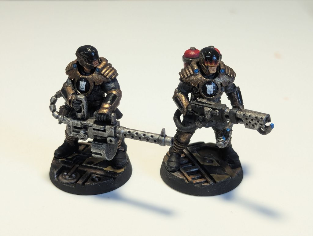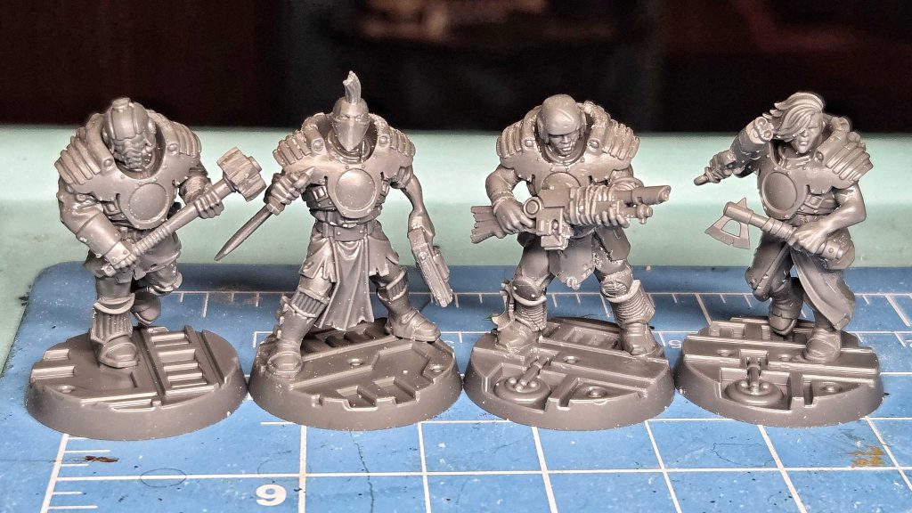 Congratulations to these old conversions on their promotions to Sgt. Credit: Genghis CohenSpecialists are now limited to a single model nominated at the start of the campaign, plus any gangers or juves promoted mid-campaign (the original Book of Judgement had some ambiguities where ordinary Patrolmen were implied to buy Advances and gain Skills like other gangs’ Specialists). Note that because Subjugator and Palanite Patrolmen are now separate fighter entries, a gang can start a campaign with one Specialist of each type. Palanite Enforcer Specialists get Palanite Drill and Shooting as Primary skills with Combat and Brawn as Secondary. Having Shooting as a Primary skill is a real strength.