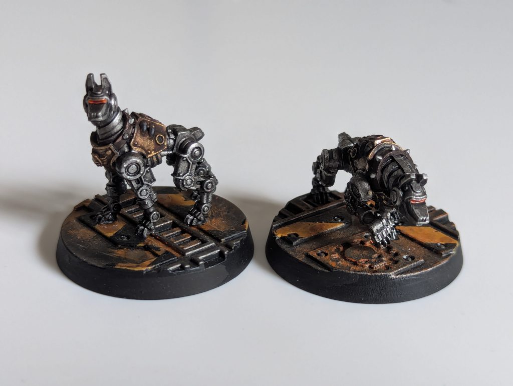 - Attack Order gives a passive buff: if the owner and one of their beasts are both engaged with the same enemy model, increase the beast’s Attacks stat by 1. (note the language prevents this buff applying to, e.g., two cyber-mastiffs at the same time) Now that situation might crop up in games sometimes, because Hardcases’ Faithful Protector rule lets them move into contact with enemies who their owner is engaged with, and their Tenacious rule almost guarantees they will get a chance to swing their attacks. But one additional attack, at S3, AP-1 with Shock, isn’t often a game-changer.