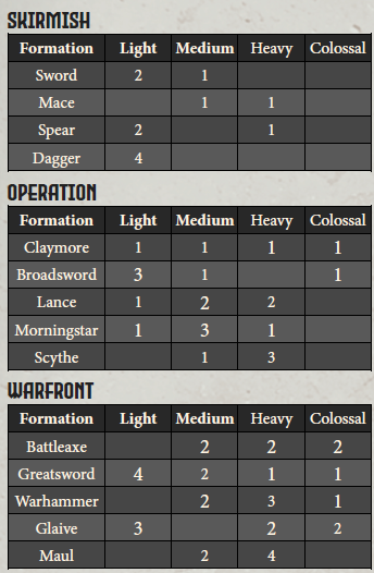 List Building in Of Oil and IronWhen assembling your squadron of rigs you'll want to start with a nice, small, easy Skirmish game to get to grips with the rules and without any Heavy mechs having rules at this point the choice is pretty easy between a Sword, Dagger, or Spear formation. Sword seems like a solid little all-rounder type but going all in on just four little rigs is very cool and for the faster factions probably quite good, too. For Operation games at the moment you'll be stuck just playing Broadsword formations, there's probably scope to just grab a few mechs and have fun though if you wanted to field Just-Mediums for example and chat with the person you're playing with about what they'll field against that.