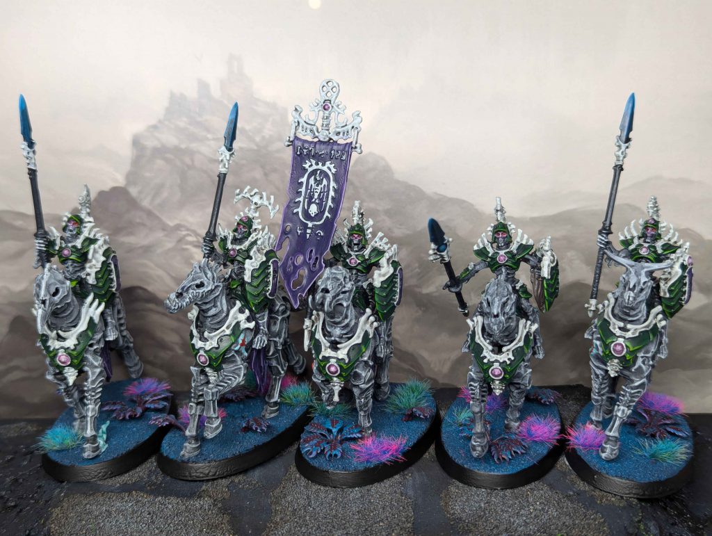 The Kavalos Vanguard are a scouting force on the hunt for places of power. In rules terms this translates to a rapid moving force with an emphasis on feints and maneuverability. Unlike the Mortisan Elite this army makes no effort to include the main battle tactics from the Battletome and I think this is a real shame. Relentless Discipline is just cool and having had a re-vamp I’d have liked to see it here. The Spearheads that function as a mini-version of their main army often finding a good spot (except Maggotkin, sorry Maggotkin). Instead your Battle Traits are Calculated Feint (retreat with no damage) and Kavalos Lance, which grants one unit Fly in each of your turns. This is kind of cool, but not the rules one would hope for from the crushing legion of bone.