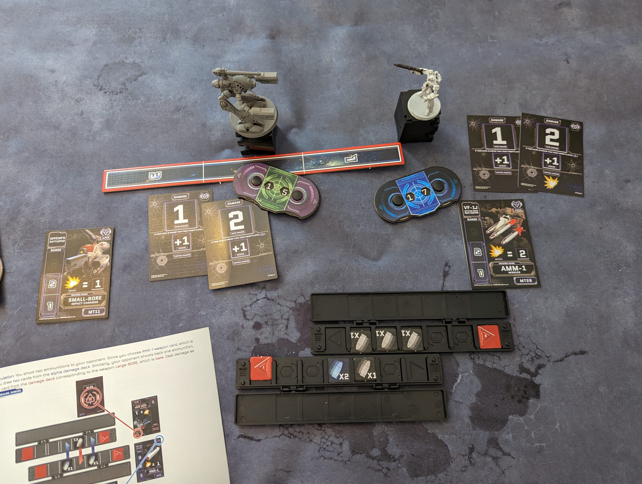 The original Macross series featured a lot of large scale engagements and squadron level actions. Even the more limited battles sometimes seen (the Max vs Milia battle in Do You Remember Love, initially started as a flight of Valkyries vs several Meltrandi pilots) didn’t drag out. In this game all units last for multiple turns even with the most damaging hits you can muster in the system, it’s not really reflective of how battles work in Macross.The individual duels of Macross Delta would feel better with this system, but the way that the licensing is done there is very little chance of that happening.