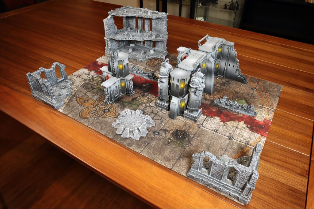 A good gaming mat really ties the warzone together. It transforms plastic figures on the kitchen table into harrowed warriors in the grim darkness of the 41st millennium. So how well does the Crumbling Courtyard from Skirmish Mat set the stage for warfare?