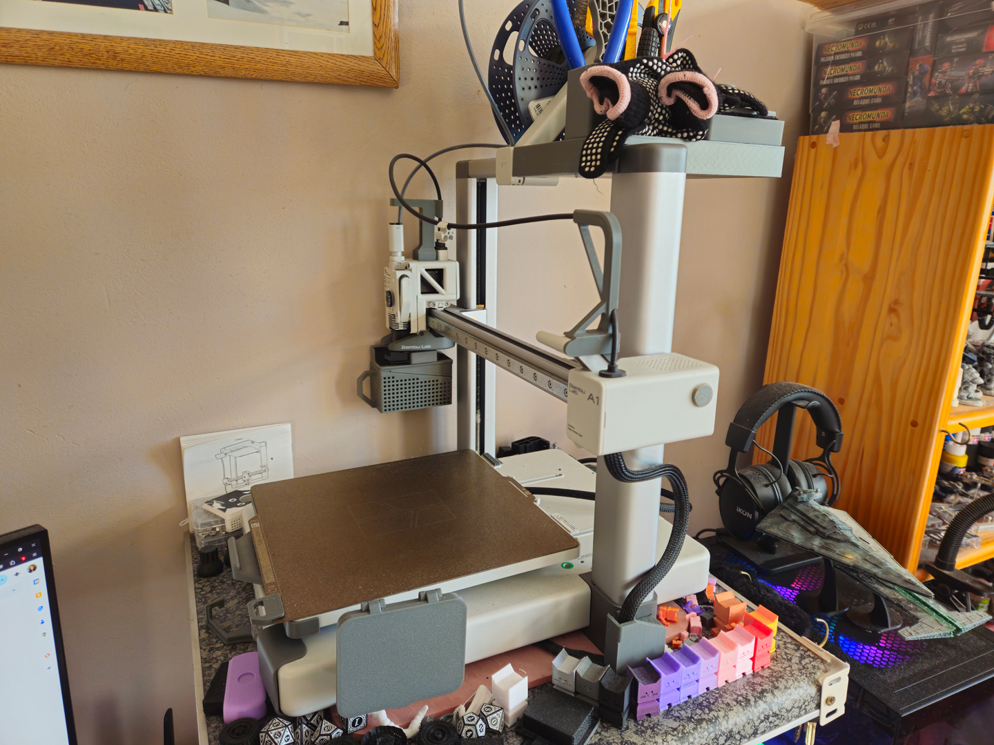 My A1 arrived in November 2024. With the exception of a few weeks away from home, it's seen almost daily use. To date, I've printed upgrades for the machine, modular" frameborder="0"> storage, toys, desk stuff, and this adorable bastard.