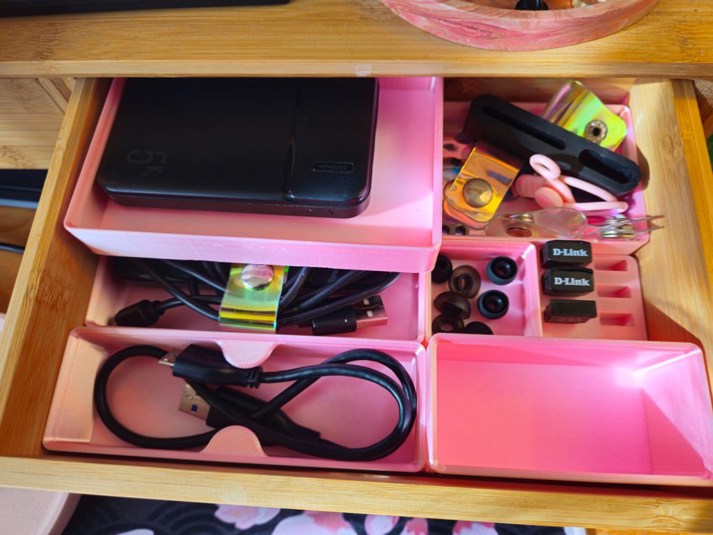 My girlfriend's antics with my printer are extremely practical, yet girly-pop coded. This is just a selection of the silky pink PLA drawer organization she's done using the Gridfinity open source storage system.Printables (by Creality), MakerWorld (by Bambu Lab) and other sites are that principle of sharing writ large. When I wanted to refill my empty filament spools with filament from a different manufacturer, I was bombarded with options. A given item on MakerWorld is likely to have a busy comment section filled with feedback, successful prints, and encouragement for the creator.