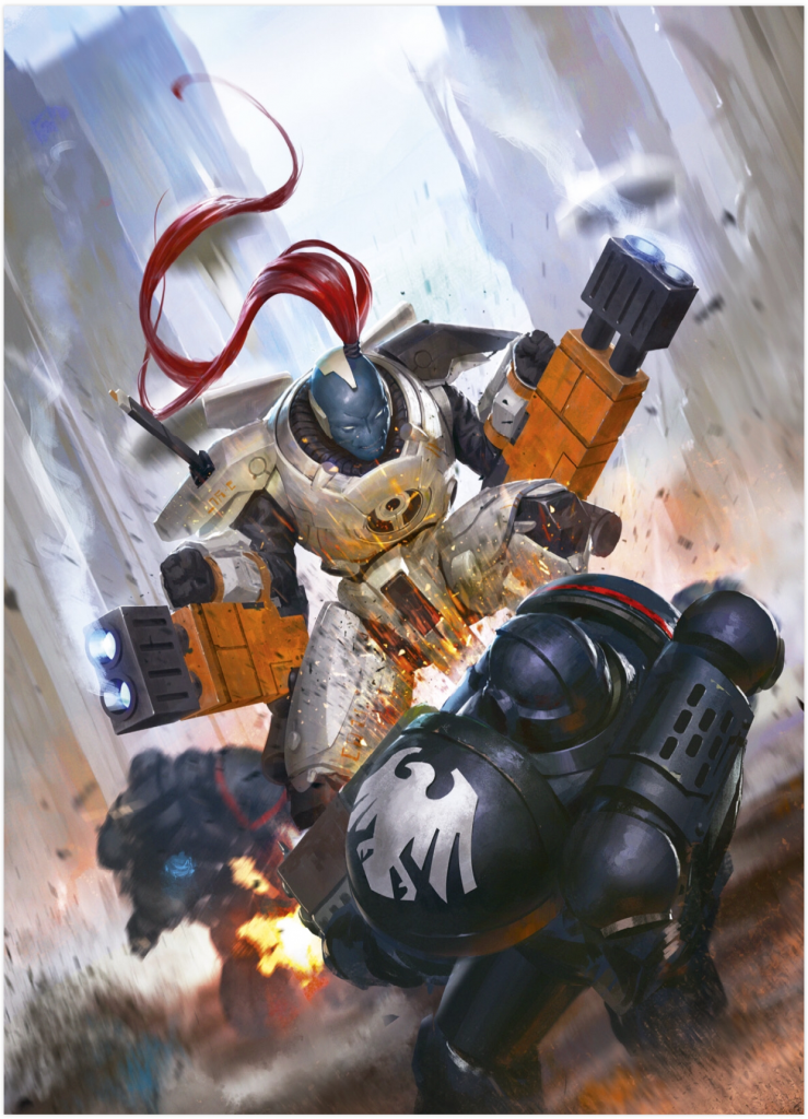 This struck me as the culmination of unlikely events, as not only did the T'au manage to uncover intel on this obscure Chapter that allowed for their manipulation, but in short order also managed to procure the precise red cape to wave in front of the bull.
