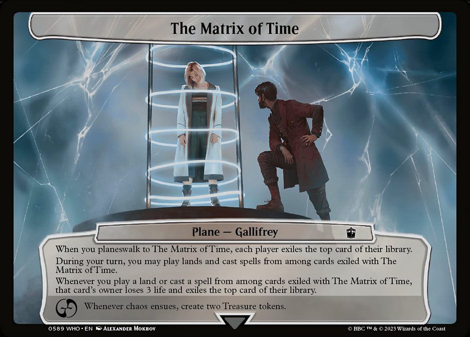 TheChirurgeon: This is a great implementation of Weeping Angels, a group of villains which immediately became some of the coolest in the series via the bottle episode "Blink" and then went on to be a bit overused. The core conceit of the Angels is that they become immobile, invincible statues when you're looking at them but when you're not they sneak up on you and steal you away in time, feeding on the unused potential left behind in the timeline. Everything about this is great in terms of execution.Loxi: Flavorfully, this is a lovely design. Practically, this is probably one of the first cut's I'd make. I don't think this ever is really worth it since most opponents will just play around it when it's already on board, and tucking a creature once seems a bit meh. Maybe if your meta has a lot of graveyard shenanigans it might be a house.