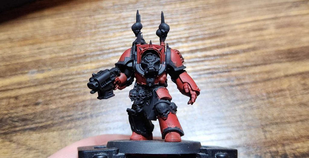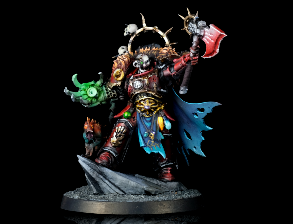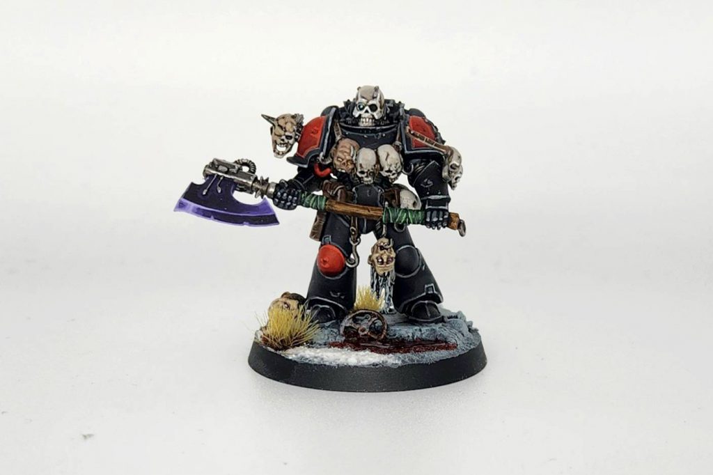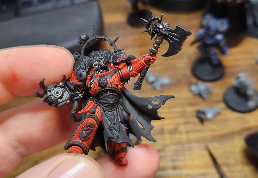 Credit: KeewaLeading the band we have Huron Blackheart, erstwhile leader of the Astral Claws, Tyrant of Badab. This model is… well, I’m disappointed, unfortunately, he’s a cool big space marine leader with a really stupid-looking head and no helmeted option. With his big, wide grinning mouth he looks like Wallace, it’s awful. While I was painting it, I kept noticing that grin and going “oh god this head is so bad” and it really bummed me out. He does have a cool mutated space monkey on his base though, with boggly eyes and a lolling tongue, he’s a pretty neat little fella.