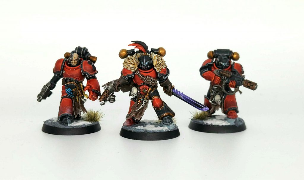 Credit: KeewaKeewa: Your basic Red Corsairs guys. My favourite aspect of these guys is that they’re very light on the Chaos iconography and general frippery - their aesthetic is much more utilitarian, with armour that’s generally quite plain with a MK3-inspired brutality to it. They can be built either with rifles or with pistols and a variety of close-combat weapons (fists, chainswords, and chain-axes - the leader gets a sword that’s like a smaller, straighter version of the cutlass of the Reave-Captain, and the option to take a pistol or a hand-flamer in the other hand). There’s also an arm that’s tossing a smoke grenade, which is very fun and flavourful for a bunch of pirate raiders. I don’t really like building models with weapons across their bodies, so with the exception of a Melta, I chose all close combat weapons. Each raider comes with a pauldron featuring a moulded version of the Red Corsairs icon on it, which is very nice, but might limit the kit’s appeal to people interested in using these models in a force of a different legion. Honestly, I would like Chaos Space Marines a lot more if they were more like these guys, renegades and rebels, and less like the ultra-hyper trim-laden Evil Laugh aesthetic of the other CSM, but I guess that’s what people vibe with.