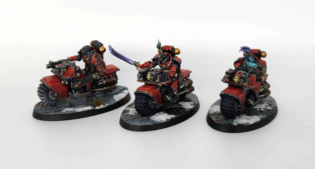 I had a ton of bits left over after assembling the unit, as you can see in the sprue pics above. There are a ton of amazing bits here, and the kit also works extremely well with older marine kits - a lot of these parts match the aesthetic of older Mk6 and Mk7 armor kits from 7th edition. I ended up using a mix of parts from this and the upgrade kits to make these bikes: