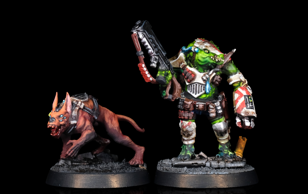 Credit: KeewaKeewa: The Enforcer (name unknown) rounds out the merry band, probably the coolest model in the whole batch, a freakin’ Tarellian Dog Soldier, an awesome crocodile dog lady with a big shotgun and some rad alien power armour and claw - she’s also wearing an armoured tank top and shorts, presumably because she’s stylish as fuck and her reptilian aspect really scratches that fantasy Lizardmen itch. GW, you must make a whole unit of these guys - they will make so much money. Accompanying The Enforcer is her friendly six-eyed dog, Plunder - because every dog soldier needs a dog.