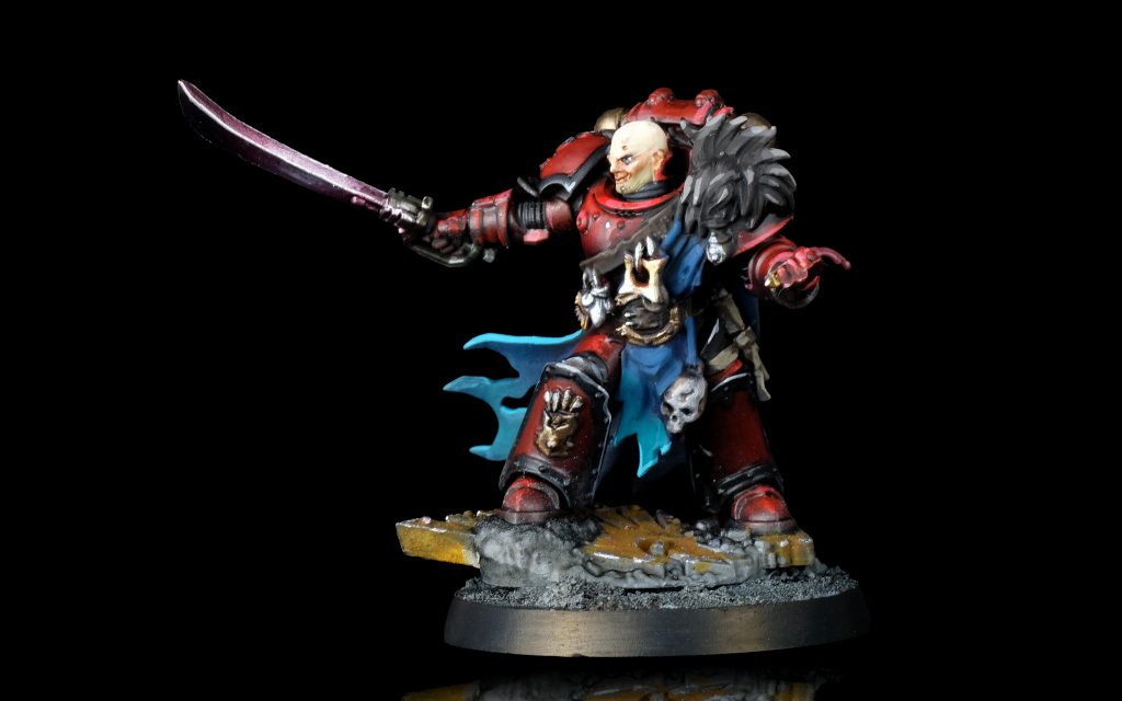 Credit: KeewaKeewa: Yarr, me hearties! The pirate captain that immediately leaps to mind when I hear Red Corsairs, a swashbuckler of the high seas (of space), one of his bare heads even has an eyepatch! He has a few other options, he can be armed with either a cutlass-style power sword or a power mace, with either a plasma pistol (with a bayonet blade), or a plundered space marine medal in his other hand - you have the choice of two bandoliers across his chest, I chose the one with a few more looted trophies, a Sisters of Battle Fleur-de-Lis, more medals, an Aquila, that sort of thing. He’s got a great fur-lined cape, and sculpted Red Corsairs hand on his shin-pad, and to top all that swag off, he’s standing defiant and mocking on a big damaged Imperial Aquila, what a guy, yo ho ho and a bottle of Amasec. I love this guy.