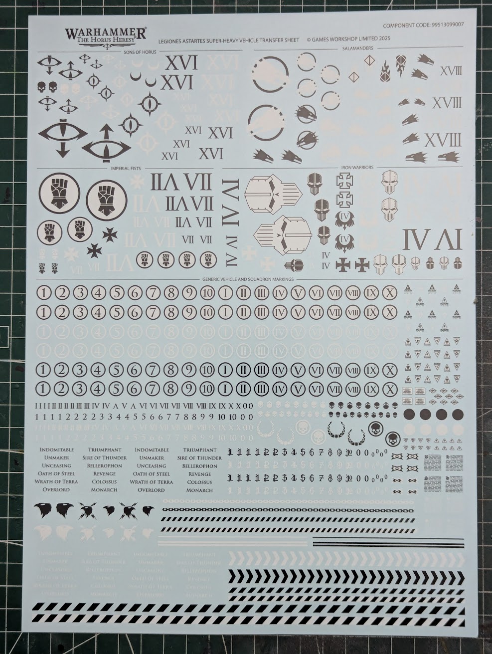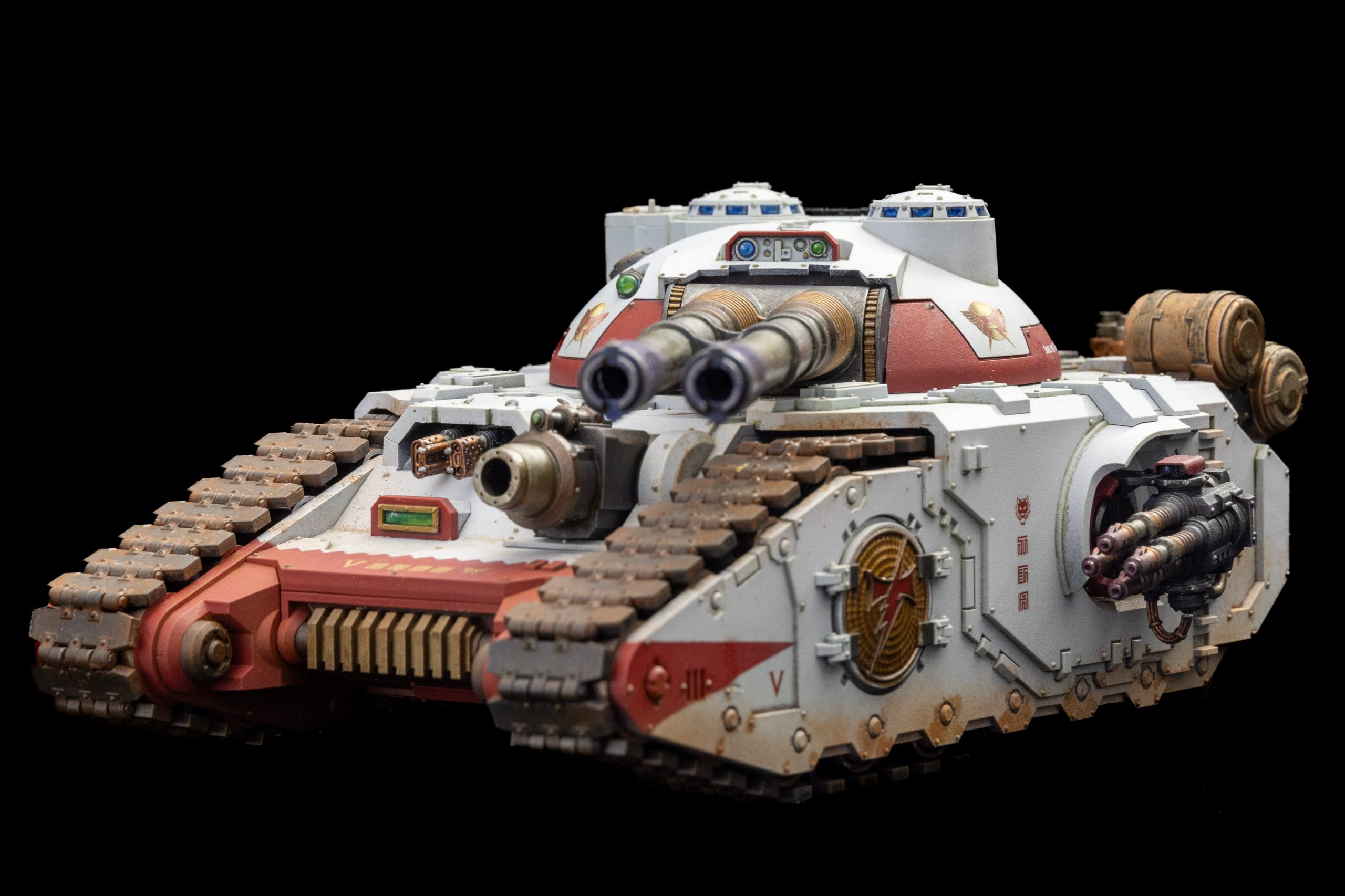 Also included is the brand new decal sheet for Super-Heavies - suggesting that we might see some more large tanks soon...In addition to weight and ease of build, the other difference from the resin kit is the move to round Deimos doors on either side, reflecting the Heresy era of this chassis compared with the more square Mars pattern doors we are used to seeing on 40K Land Raiders and the like. I was fortunate enough to be able to pop by Warhammer world and pick up some resin White Scars doors, which were a flush fit.