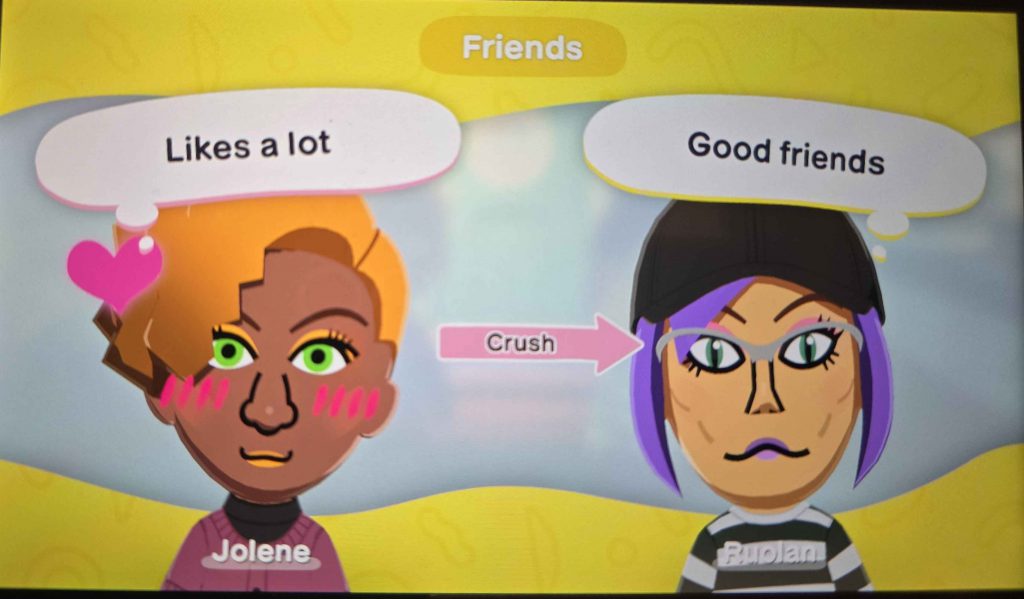 Seeing Miis social circles swell is a great charm and sometimes shocking reward as they'll make connections without you, and can extend beyond 1 on 1 situations.I love that, and I love this game. I have not thought about a game this way in quite a while, and I don’t know when the next time will actually be. My daily life is busy and hectic and often filled with numerous responsibilities I’d rather I didn’t have to manage, my professional life takes up the majority of my time not taken up by my domestic ones, and looking at anything happening beyond my front door just tends to stress me out and make me realize that what I do has little impact on those things, but they have a big impact on me and mine. So, I’ve been finding the time spent with Tomodachi Life relaxing and charming; as it stands I’m at 15 Miis and working towards 20, numerous are dating, some are about to move in to each other’s homes, and it delights me whenever I have the time to turn on my Switch and play it. The fact that it works great on Switch or Switch 2 makes it accessible, and at 60 dollars it feels like an oddly bargain price for a functionally endless game while I stare at ads for games asking me for 80 or more for less than ten hours of content.