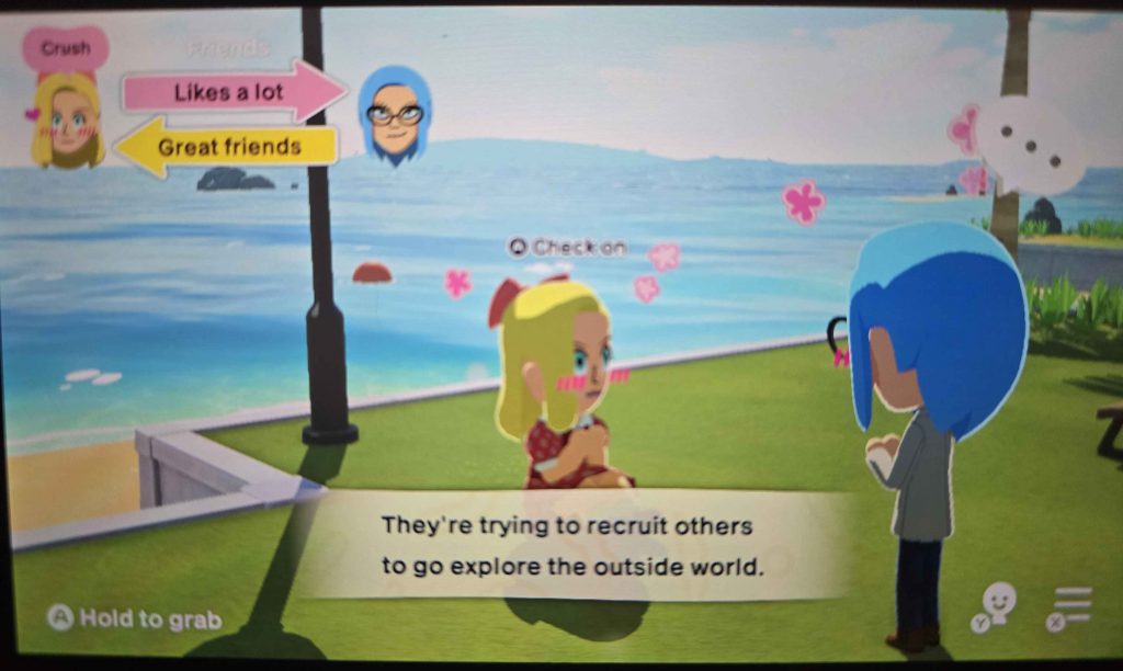 The rolling "achievement" news stories for your island growing are cute, and help you see all your Miis together.Tomodachi Life: Living the Dream ups the ante a bit by giving the player far more control over the island they populate, with a much more elaborate building engine and customization options for everything ranging from your Miis to clothing, food, and more, using a fairly easy to use but hard to master pixel by pixel drawing tool. As your Miis live on the island, they’ll interact with each other, forming various types of relationships that can range from friendly to romantic and even antagonistic, and the game gives surprisingly broad ability to set how those relationships can play out. When making Miis, players can set their gender identity (Male/Female/Non-Binary), their pronouns for Non-Binary Miis (He/She/They), and their dating preferences (Male/Female/Non-Binary, with the ability to select as many as one likes). The inclusion of queer and broad dating preferences alone is a great detail, but you can even create an island in which characters will simply be friends by swapping their dating preferences to identities that aren’t present on your island (How do I know? Because my entirely female and non-binary lesbian island had no one dating for the first day and a half until I realized I hadn’t set their dating preferences). Your Miis will exhibit preferences for food, activities, social interactions, and as their happiness levels rise, you can help assign them various quirks like standing poses, walking styles, catchphrases, and more.