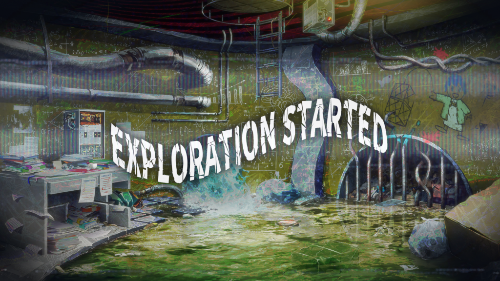Type-NOISE begins with two characters finding themselves locked inside of a room that is slowly filling with water, providing you with a general tutorial of how the game will play out and what to expect from how it works: Players can manipulate a 2D screen to interact with the background like a point and click adventure, and as they do so find items and clues that will be used to solve the overall puzzle of the room and grant them the ability to exit it. Items can be combined, and often the main goal of finding items is to combine them into something else, which can then be used to interact with the map to progress the puzzle. As you collect items and hints, players will be given “Noise” fragments, which when combined in a small little puzzle mini-game, show the player memories the characters have forgotten.