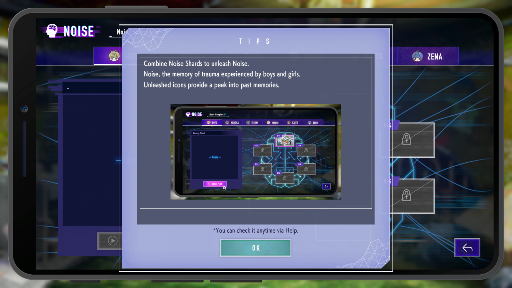 The Noise Shards are how you view various character backgrounds.This is generally the gameplay loop for the overall game: Progress the story, enter a new puzzle room, discover the secrets of the character(s) that room pertains to, and overall try to uncover the overarching puzzle that surrounds everything going on around the characters and how they arrived in this version of Shibuya. Because an escape room game isn’t complete without some sort of larger mystery, the characters learn that they are stuck in this version of Shibuya that seems to mimic the real world, and that attempting to leave before solving their puzzles will result in their deaths.