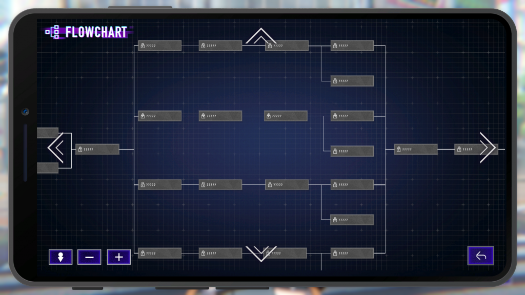 The flowchart feature made going to see all of these scenes and all of their outcomes so much easier, I wish more visual novel games would use systems like this.As you play through the various rooms for each character, the game uses a flowchart system that allows you to track your progress through the story, but also allows you to easily go back to sections that you didn’t complete and see what options can be taken. For example, one of the early choices in the game asks you which of two rooms you would like to go into, and depending on which you choose, the story diverts. I like the simplicity of the flowchart and the fact that jumping back to sections is always available; one of the least favorite parts of games like this is the fact that you sometimes have to replay the entire game just to see how a new choice affects the overall narrative; here, you can simply jump back and see it immediately, and you can also jump to various parts of the timeline whenever you want.