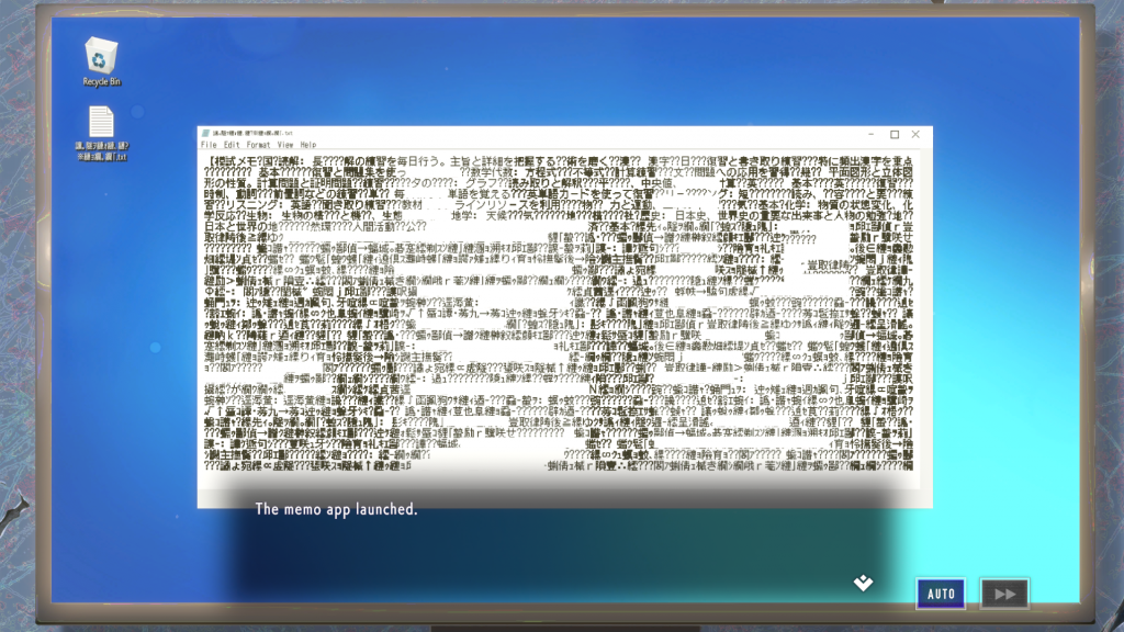 Again, this line is almost amazing and funny, but the missing word really does get distracting.My only other reservation is that the game is not exceptionally difficult, nor does it push the envelope in terms of narrative. I don’t actually think this is a bad thing, and I actually think that it’s fine if media execute what they are trying to do successfully instead of constantly trying to break new ground. Type-NOISE is a great introduction to puzzle novel games like this, but if you go in expecting it to reinvent the genre or produce something that it is not trying to do, you may be disappointed, which is mostly based on expectation over reality.