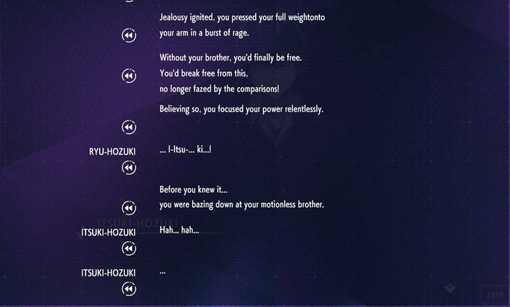 There are a few things I need to bring to attention however before wrapping up my review and recommendation of the game, and the chief complaint I have with Type-NOISE is the proofreading in the game. I can tell by the credits that this was a small team and so I do not want this to sound nitpicky, but there are numerous times in which the script of the game has typos and grammatical mistakes that distract from the writing, sometimes to comical effect. One such scene early in the game has a character trying to grapple with the memory of a lost sibling, and the statement should read “You gaze at your brother’s lifeless body”, but the typo instead makes it read “You baze at your brother’s lifeless body”, which completely sucked me out of the game’s story and made me laugh at an inopportune time.