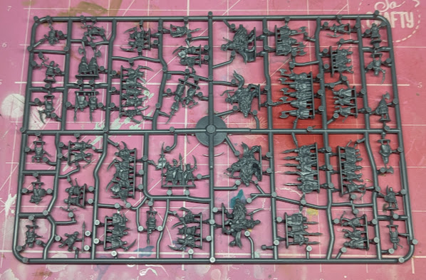 Contents of one Classic Fantasy Battles Orc Horde box. Credit: Rich NutterThe kit produces a number of different types of orc warriors, designed to fit on the included 20x40mm bases, armed with Wargames Atlantic’s now ubiquitous magnet hole and puddle base recess. As listed by the box, the kit can build 6 bases of bowmen, 3 of spearmen, 3 each of light and heavy swordsmen, 3 of heavy axemen, and 6 bases of warg riders. That’s a lot of green muscle for your money! For the observant among you, both that base size and units in multiples of three bases might seem familiar - more on that later.