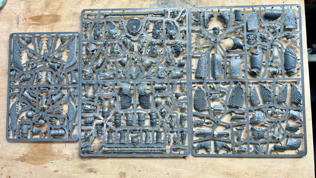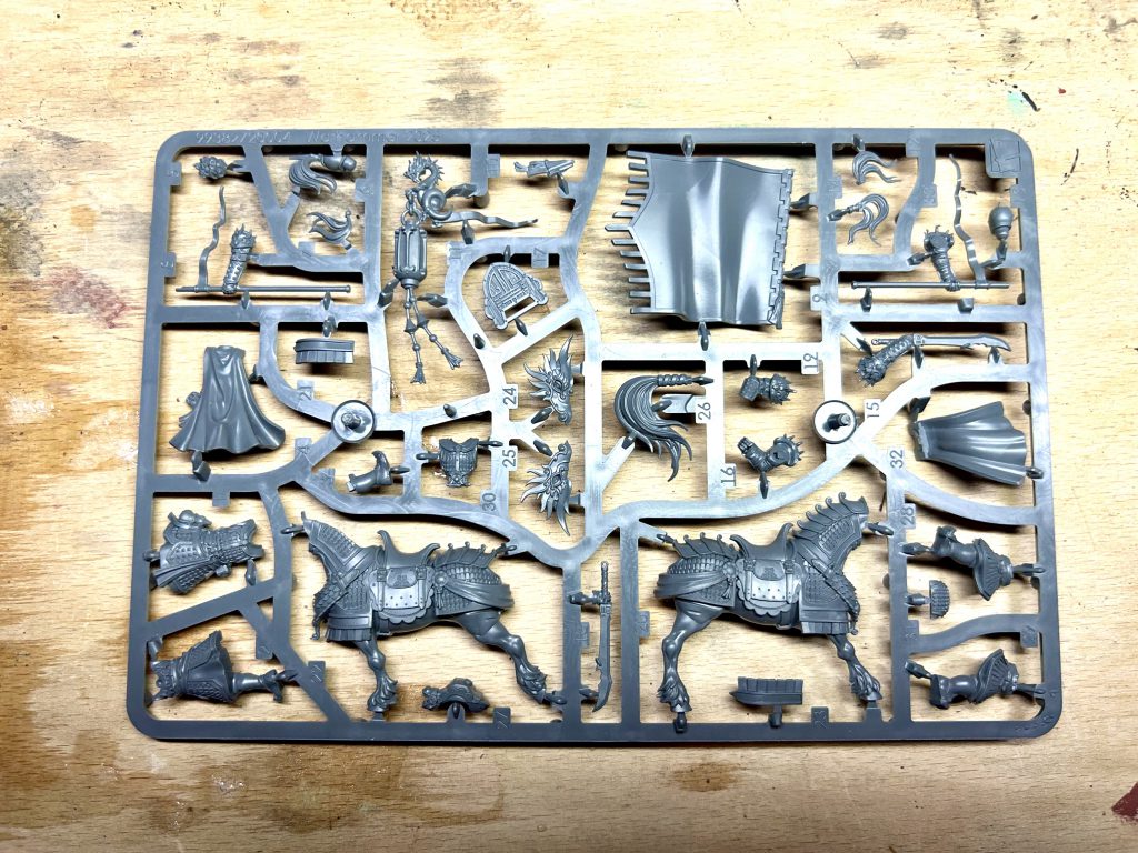 Gate Masters SpruesInitially I was taken aback by how straightforward these models are. The construction and posing seem very basic in modern terms, but swiftly I realised that of course these models need to rank up, which places limitations on the posing and sculpting of the model. With modern sculpting and casting improving all the time, I guess I have become used to the extremely dynamic poses in AoS and 40k both and these seem simplistic by comparison. That is not to say they aren’t lovely models, as they are and were a pleasure to build. I just haven’t built a horse with the ‘one foot up’ pose for like 20 years!? These models are super simple to assemble and I would call this a ‘lunchtime’ kit in fact. They do still benefit from developments in model design however, I was impressed by the multiple overlapping pieces that lock the standard into the pole, cleverly making that a very strong join where it could be weak. Nice kit.