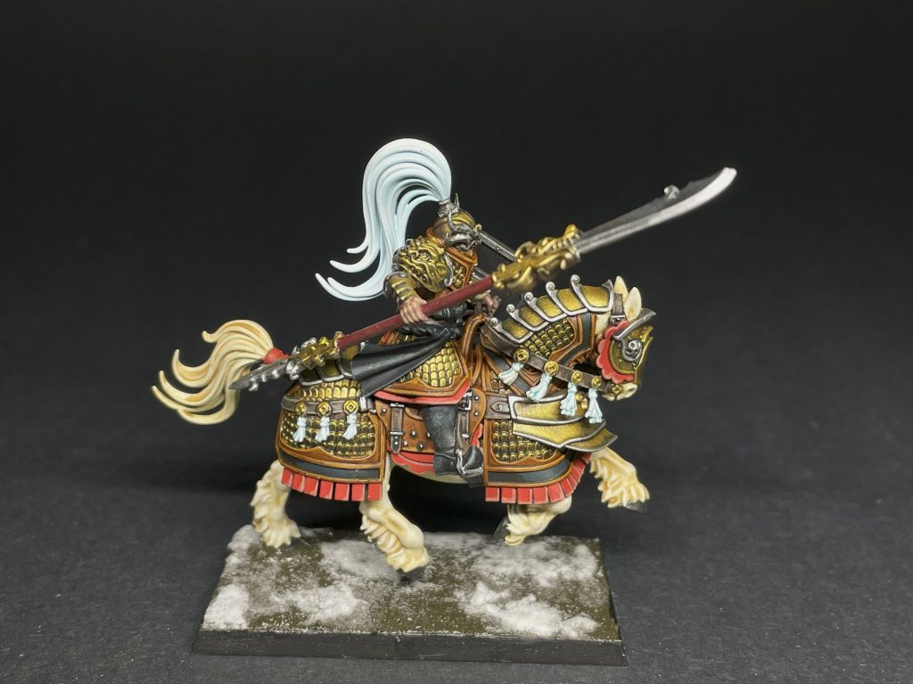 For a final touch I added some freehand to the armour in black, using inspiration from Grand Cathay art while I added a flower pattern to the blue, citing Chinese art.
