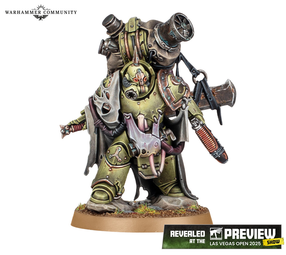 The other unheralded release from the previews, the upcoming Death Guard Lord of Poxes was likely a bit of an afterthought to close a hole - the model was leaked a few weeks ago when it was apparently erroneously sent to a customer by Games Workshop. This new Lord is implied to be on the same level as the Lords of Contagion and Virulence.