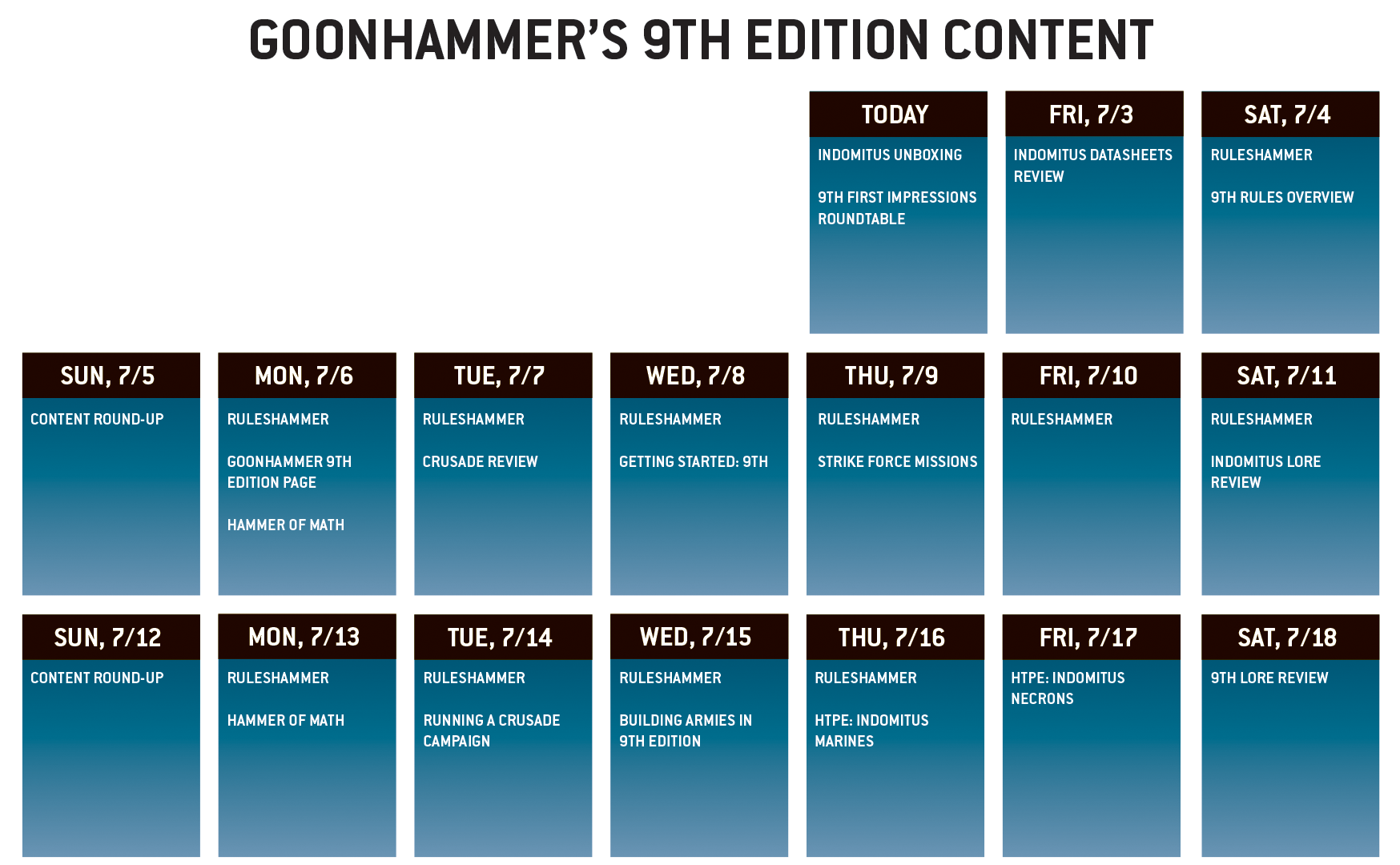 There may be more than this as we find time to write it and get it on the schedule, and we'll still be posting the same great content we do for other games like Necromunda, Aeronautica Imperialis, Adeptus Titanicus, Age of Sigmar, and board games. We'll be posting our Indomitus unboxing and first impressions roundtable shortly. In the meantime, if you have any questions or feedback, drop us a note in the comments below or email us at contact@goonhammer.com.