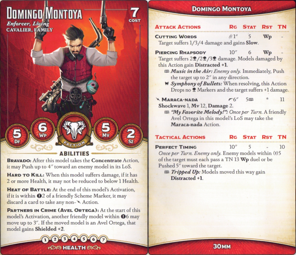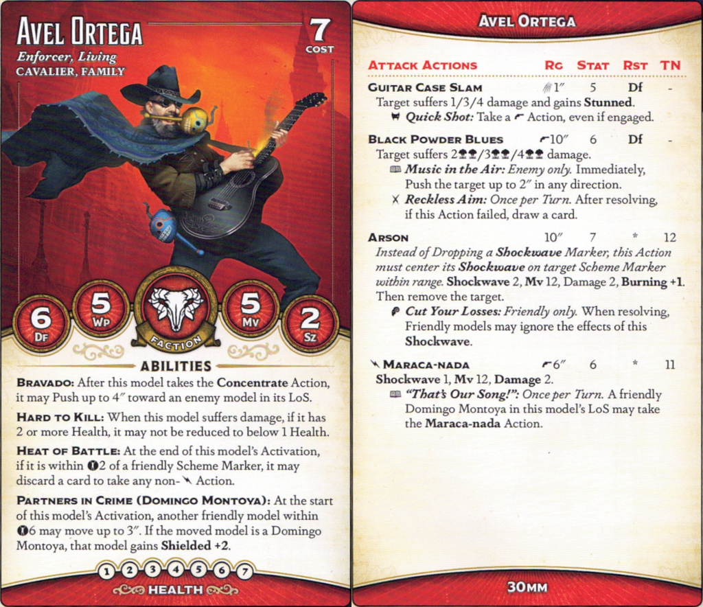 Avel's a classic Ortega: Bravado, Hard to Kill, and a ranged attack. Partners in Crime is actually a pretty strong ability, even if you're not moving Domingo around. Heat of Battle is great, though Family is already pretty taxed for cards - it's like A Por El, but with extra setup costs that Family usually doesn't have to pay.