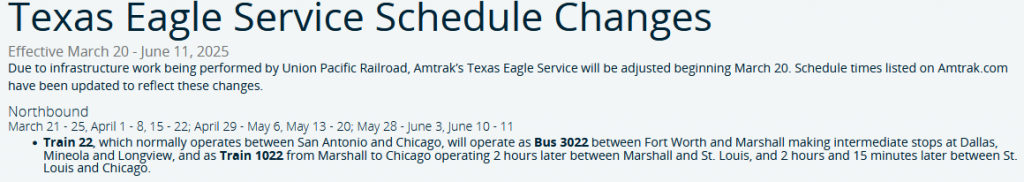 Will we arrive on time? Uh, maybe? Luckily there are a bunch of daily trips between Chicago and Milwaukee, so if we're late into Chicago Amtrak will just rebook us on one of those. Based on the Texas Eagle’s on time performance over the past month, we’ve got about a 60% chance of making our scheduled connection, about a 27% chance of getting bumped to the train that leaves an hour and a half later, and a 13% chance of having a True Amtrak Adventure™️.