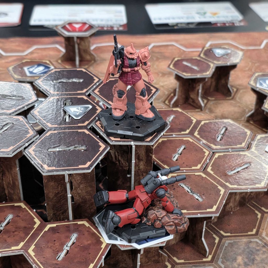 Jake "Starting Hex" Bennington: The fact that there are multiple routes to scoring victory points is interesting. I hope there is a nice balance between beating other mobile suits up and needing to zip around the battlefield to grab tokens. Some of the units in the starter box also showcase that they can be specialized for different roles – the Guncannon, for instance, is able to rescue allied garrisons after firing its shoulder cannons and the Bazooka packing Zaku gains more damage for every garrison you've rescued this game. Char is also amusingly good at dashing near an enemy garrison and kicking it to death.
