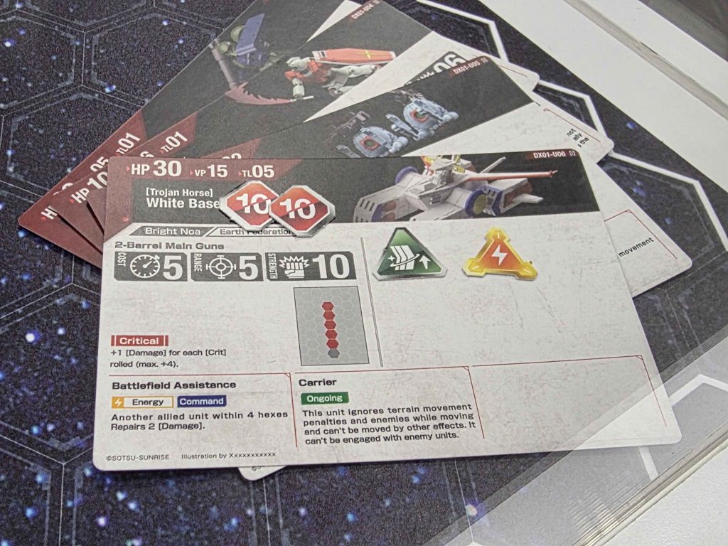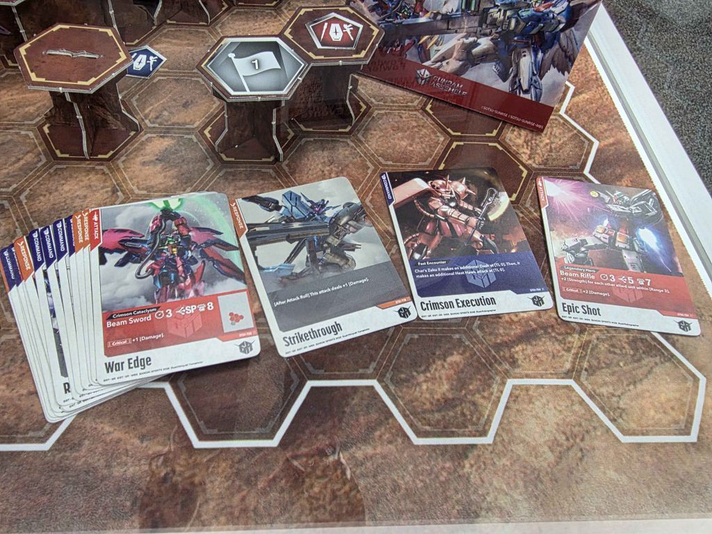 Fowler: Buffs were pretty abundant among the units in the demo. Some mobile suits got permanent boosts to hit rolls based on landing crits, others can be improved with the strategy cards.